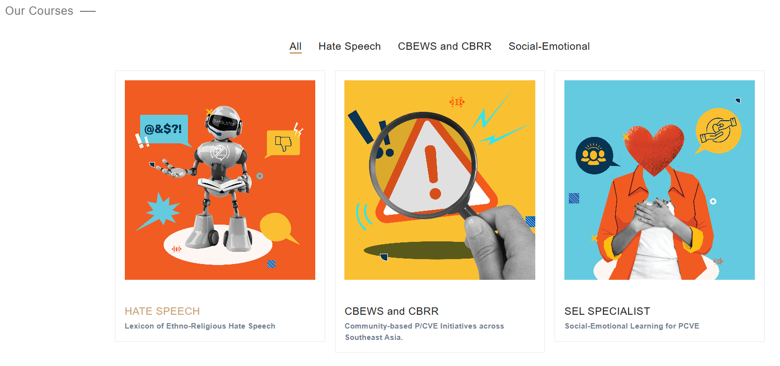 - Through various interactive activities, reflective exercises, and case studies from Southeast Asia, you will gain the skills to implement effective P/CVE programs in your communities through this e-learning.
